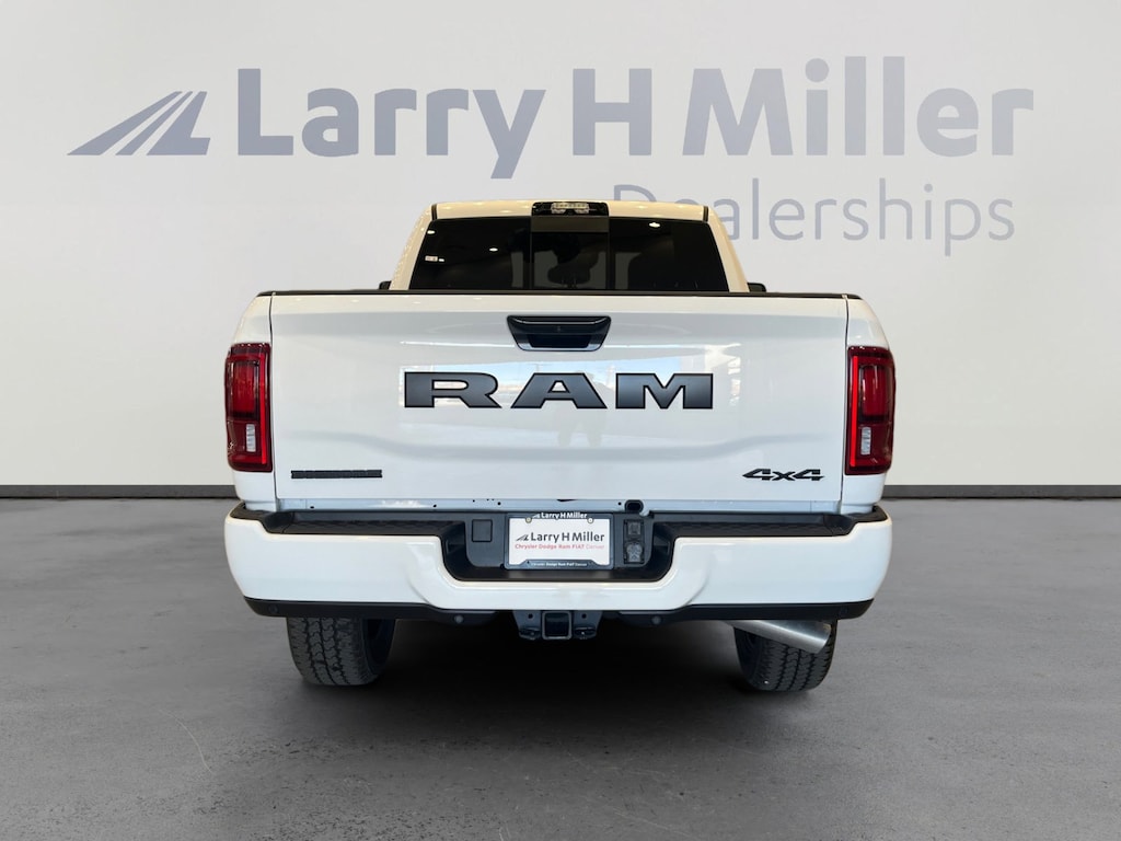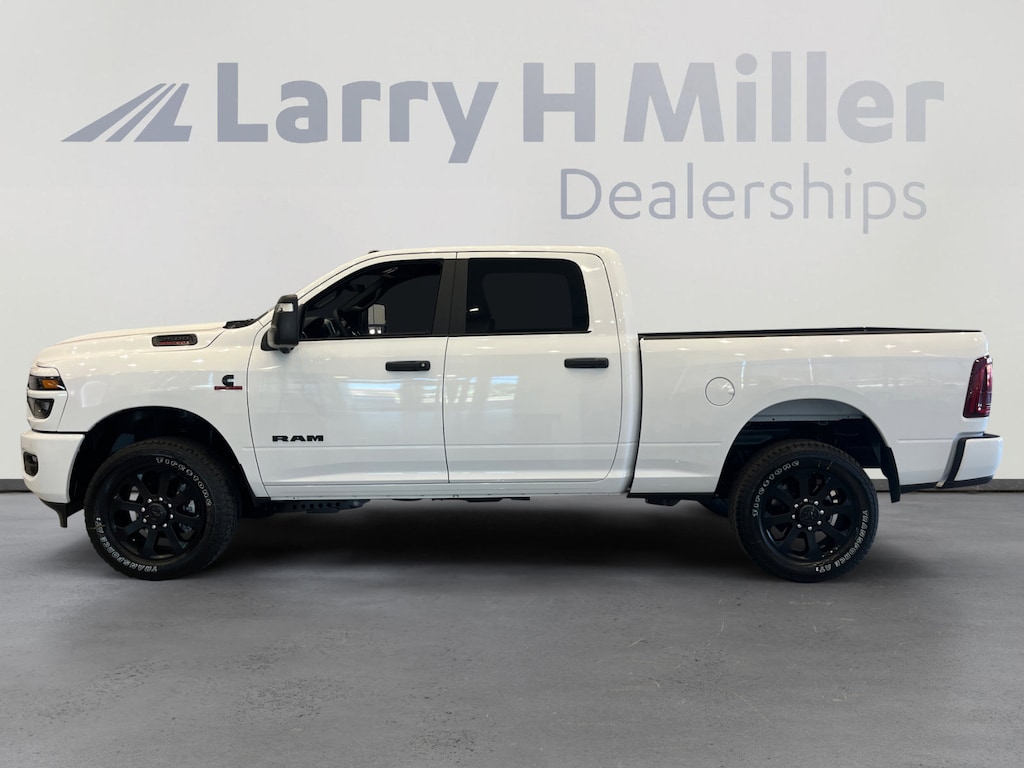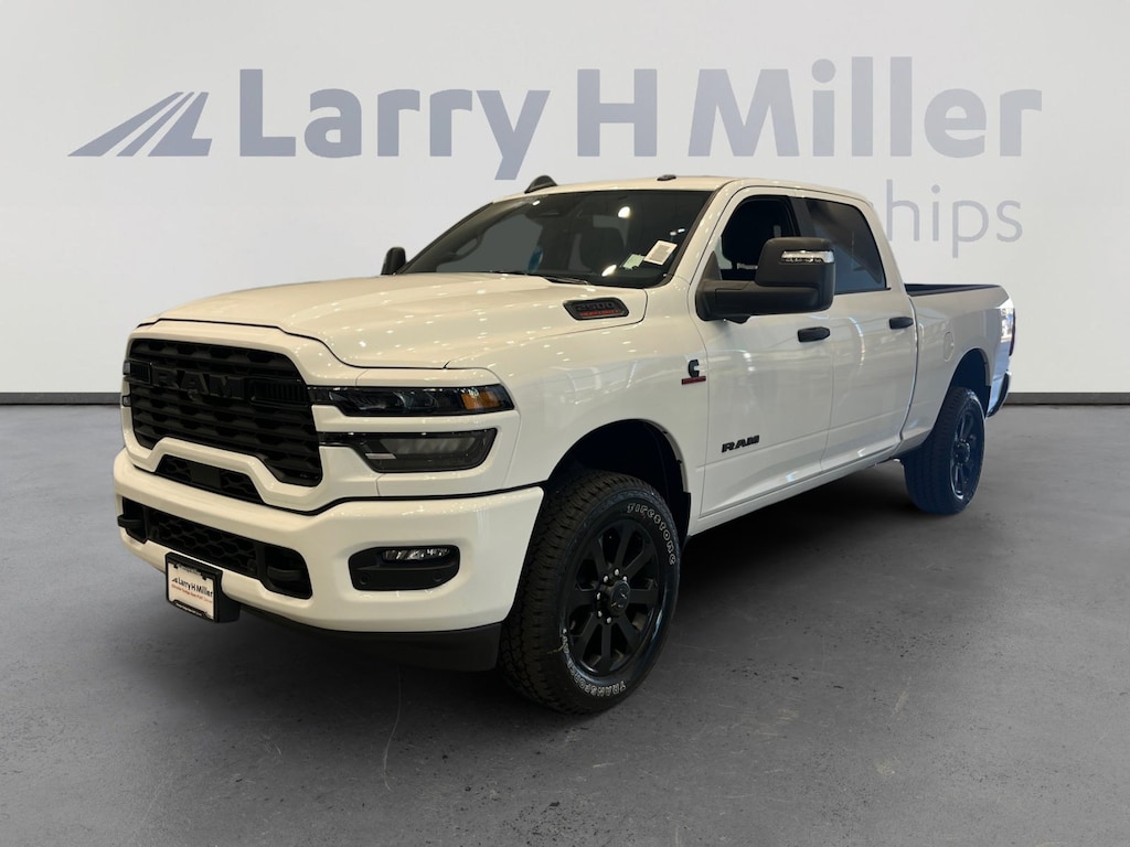 Larry H. MIller Chrysler Dodge Ram Fiat offers this 2025 Bright White Clearcoat Ram 2500 Big Horn 4WD. It is well equipped and includes these standard and optional features and benefits: Big Horn Level 2 Plus Equipment Group (115V Auxiliary Front Power Outlet, 115V Auxiliary Rear Power Outlet, 12 Touchscreen Display, 2 Way Rear Headrest Seat, 2nd Row In Floor Storage Bins, 4 Way Front Headrests, 400W Inverter, 4G LTE Wi-Fi Hot Spot, 9 Alpine Speakers w/Subwoofer, Active Lane Management System, Adaptive Steering System, Air Conditioning ATC w/Dual Zone Control, Alexa Built-In, Anti-Spin Differential Rear Axle, Apple CarPlay, Auto High Beam Headlamp Control, Auto Power-Folding Mirrors, Auto-Dimming Rear-View Mirror, Black Exterior Mirrors, Blind Spot & Cross Path Detection, Bucket Seats, Connected Travel & Traffic Services, Connectivity - US/Canada, CTR Stop Lamp w/Cargo View Camera, Dampened Tailgate, Disassociated Touchscreen Display, Drowsy Driver Detection, Dual Glove Boxes, Dual Wireless Charging Pad, Emergency Vehicle Alert System (EVAS), Exterior 115V AC Outlet, Exterior Mirrors Courtesy Lamps, Exterior Mirrors w/Heating Element, Exterior Mirrors w/Supplemental Signals, Foam Bottle Insert (Door Trim Panel), Folding Flat Load Floor Storage, Footwell Courtesy Lamp, Forward & Reverse Utility Lights, Front Seat Back Map Pockets, Full Length Upgraded Floor Console, Global Telematics Box Module (TBM), Glove Box Lamp, Google Android Auto, GPS Antenna Input, GPS Navigation, HD Radio, Heated Front Seats, Heated Steering Wheel, Integrated Voice Command w/Bluetooth, LED Bed Lighting, LED Tail Lamps, Locking Lower Glove Box, Luxury Steering Wheel, Manual Adjust 4-Way Front Passenger Seat, Media Hub w/2 Charge Only USBs, Mirror Running Lights, MOPAR Deployable Bed Step, MOPAR Spray In Bedliner, Off-Road Info Pages, Power 2-Way Driver Lumbar Adjust, Power Adjust 8-Way Driver Seat, Power Adjust Mirrors, Power Adjustable Convex Aux Mirrors, Power Adjustable Pedals, Power Heated Folding Telescopic Mirrors, Power Telescoping Mirrors, Premium Cloth Bucket Seats, Radio: Uconnect 5 Nav w/12.0 Display, Rain Sensitive Windshield Wipers, Rear 60/40 Folding Seat, Rear Dome w/On/Off Switch Lamp, Rear Power Sliding Window, Red Tail Lamp Bezels, Remote Start System, Selectable Tire Fill Alert, SiriusXM Radio Service, SiriusXM w/360L, Steering Wheel Mounted Audio Controls, Sun Visors w/Illuminated Vanity Mirrors, Surround View Camera System, Traffic Sign Recognition, Trailer Reverse Guidance, Trailer Tire Pressure Monitoring System, Trailer Tow Pages, and Universal Garage Door Opener), Cold Weather Group (Engine Block Heater and MOPAR Winter Front Grille Cover), Night Edition (Black Exterior Truck Badging, Black Interior Accents, Black Wheel Center Hub, Body Color Grille Surround, Gloss Black Nostrils/Mic Black Grille, Painted Front Bumper, Painted Rear Bumper, and Wheels: 20 x 8.0 Black Painted Aluminum), Quick Order Package 24Z Big Horn, 4-Wheel Disc Brakes, 40/20/40 Split Bench Seat, 6 Speakers, ABS brakes, Air Conditioning, Alloy wheels, AM/FM radio: SiriusXM, Apple CarPlay/Android Auto, Brake assist, Bumpers: chrome, Cloth 40/20/40 Bench Seat, Compass, Delay-off headlights, Delete Deployable Bed Step (DISC), Driver door bin, Dual front impact airbags, Dual front side impact airbags, Electronic Stability Control, Front anti-roll bar, Front Armrest w/Cupholders, Front Center Armrest w/Storage, Front fog lights, Front License Plate Bracket, Front reading lights, Fully automatic headlights, Heated door mirrors, Illuminated entry, Low tire pressure warning, Manual Adjust 4-Way Driver Seat, MOPAR Front & Rear Rubber Floor Mats, Occupant sensing airbag, Outside temperature display, Overhead airbag, Overhead console, Panic alarm, ParkView Rear Back-Up Camera, Passenger door bin, Passen Price includes: $4000 - 2025 National Bonus Cash . Exp