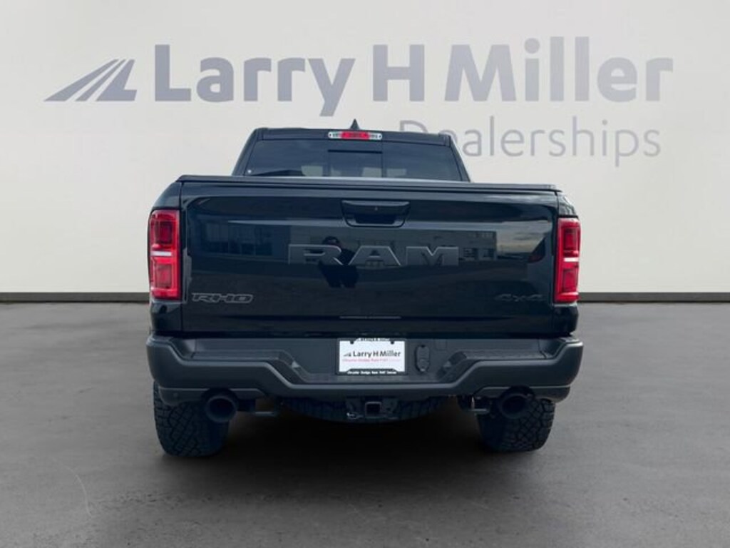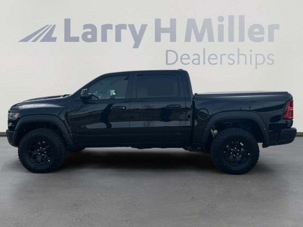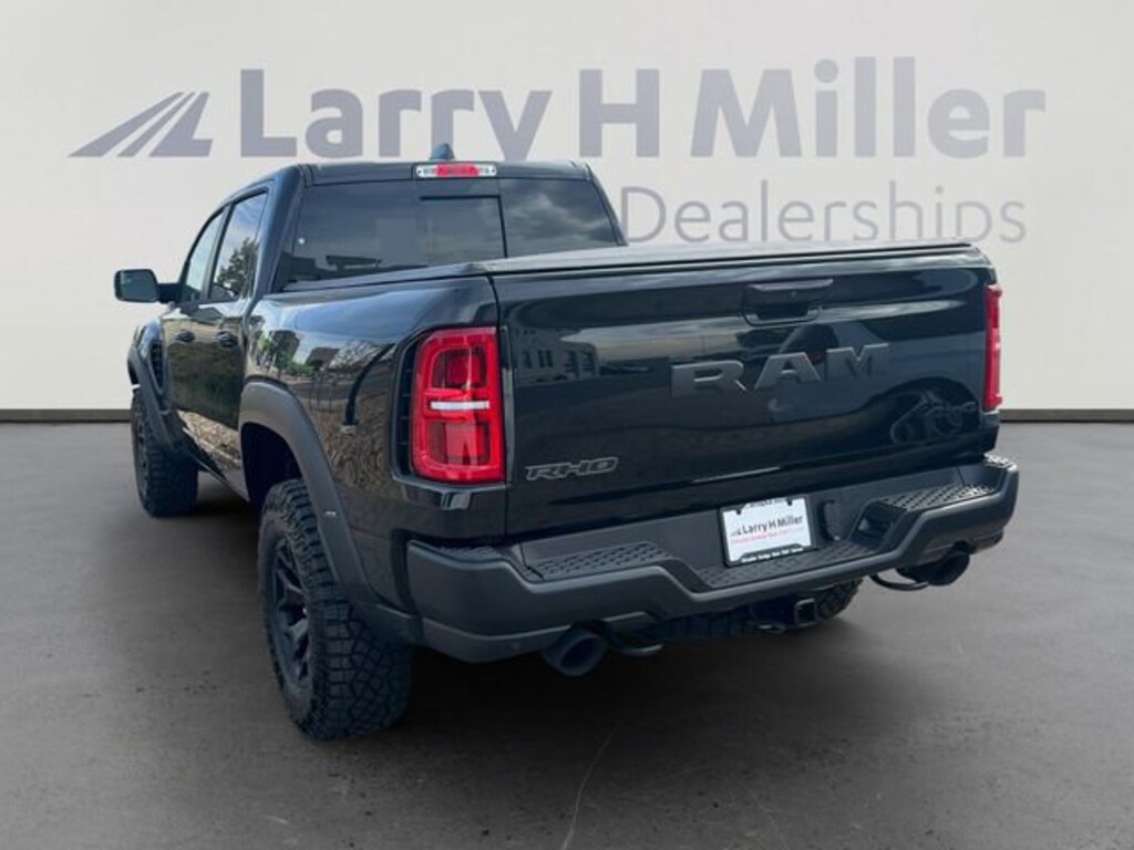 Larry H. MIller Chrysler Dodge Ram Fiat offers this 2026 Diamond Black Crystal Pearlcoat Ram 1500 RHO 4WD. It is well equipped and includes these standard and optional features and benefits: 10 Speakers, ABS brakes, Active Cruise Control, Alloy wheels, Compass, Electronic Stability Control, Front dual zone A/C, GPS Navigation, Heated door mirrors, Heated front seats, Illuminated entry, Integrated Center Stack Radio, Low tire pressure warning, Remote keyless entry, Traction control, 3.92 Rear Axle Ratio, 4-Wheel Disc Brakes, 4G LTE Wi-Fi Hot Spot, Adaptive suspension, Adjustable pedals, Air Conditioning, AM/FM radio, Apple CarPlay/Android Auto, Auto High-beam Headlights, Auto Power-Folding Mirrors, Auto-dimming door mirrors, Auto-Dimming Exterior Driver Mirror, Auto-dimming Rear-View mirror, Automatic temperature control, Brake assist, Connected Travel and Traffic Services, Connectivity - US/Canada, Delay-off headlights, Disassociated Touchscreen Display, Driver door bin, Driver vanity mirror, Dual front impact airbags, Dual front side impact airbags, Exterior Mirrors Courtesy Lamps, Exterior Mirrors with Heating Element, Exterior Mirrors with Supplemental Signals, Exterior Parking Camera Rear, Flareside Box, Front anti-roll bar, Front Bucket Seats, Front Center Armrest w/Storage, Front fog lights, Front reading lights, Front wheel independent suspension, Fully automatic headlights, Garage door transmitter, HD Radio, Heated steering wheel, Integrated Voice Command with Bluetooth, Leather Shift Knob, Leather steering wheel, Leather Trimmed Bucket Seats, Occupant sensing airbag, Outside temperature display, Overhead airbag, Overhead console, Panic alarm, Passenger door bin, Passenger vanity mirror, Power door mirrors, Power driver seat, Power passenger seat, Power steering, Power windows, Radio data system, Radio: Uconnect 5 Navigation with 12.0 Display, Rear reading lights, Rear seat center armrest, Rear step bumper, Rear window defroster, Security system, SiriusXM Radio Service, Speed control, Split folding rear seat, Sport steering wheel, Steering wheel mounted audio controls, Tachometer, Telescoping steering wheel, Tilt steering wheel, Trip computer, Turn signal indicator mirrors, USB Host Flip, Variably intermittent wipers, Voltmeter, and Wheels: 18 x 9 Black Paint/Polish Aluminum. 10 Speakers, ABS brakes, Active Cruise Control, Alloy wheels, Compass, Electronic Stability Control, Front dual zone A/C, GPS Navigation, Heated door mirrors, Heated front seats, Illuminated entry, Integrated Center Stack Radio, Low tire pressure warning, Remote keyless entry, Traction control.