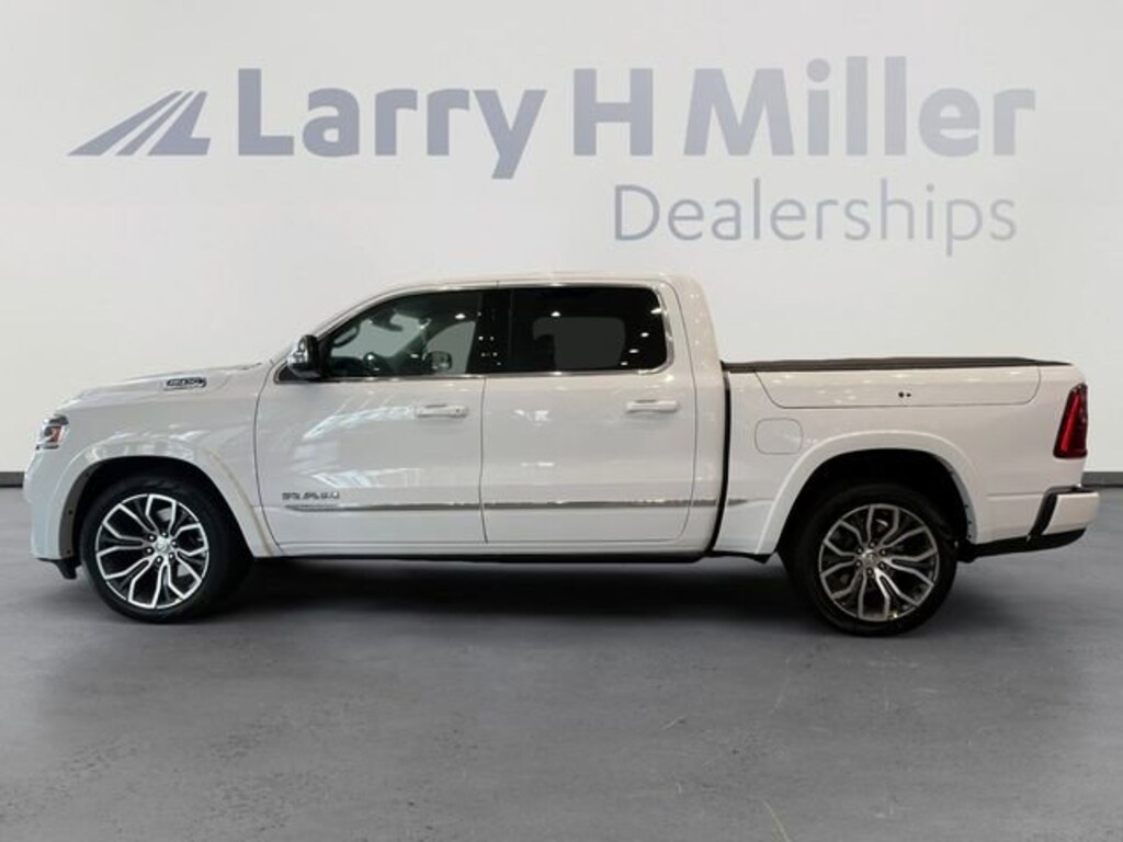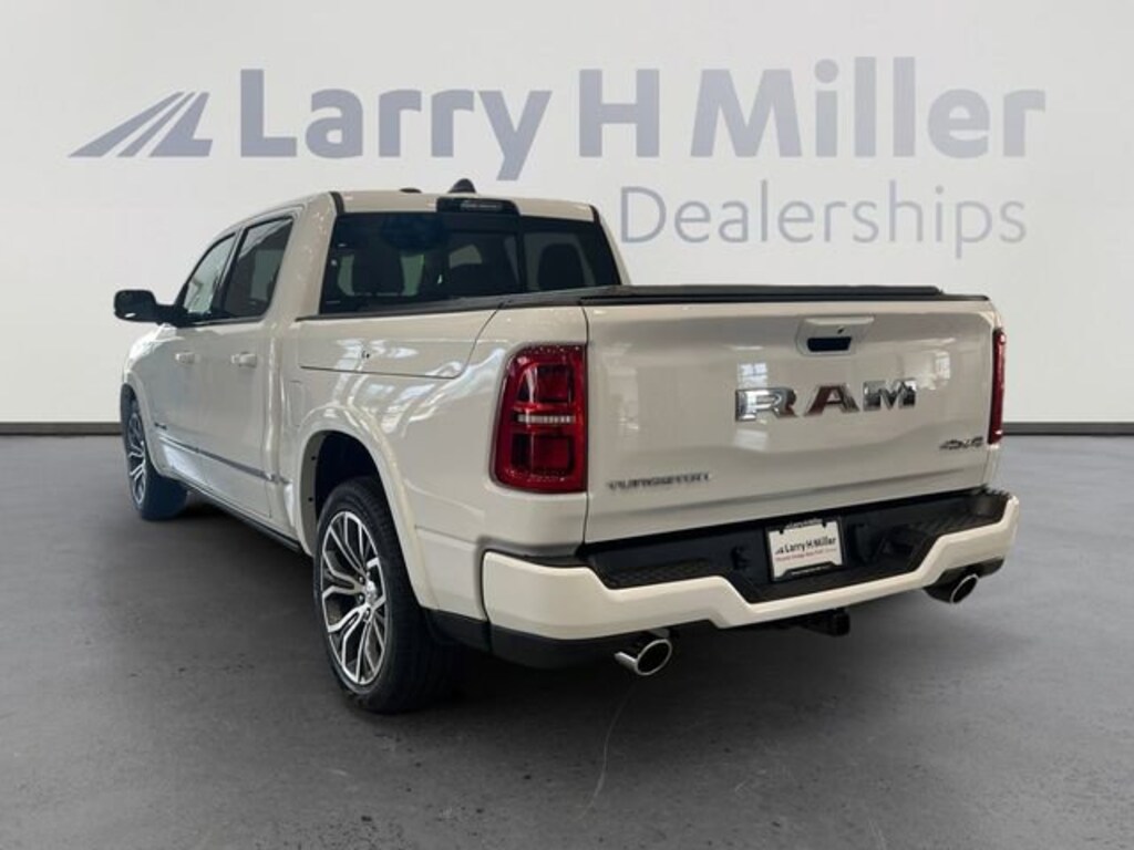 Larry H. MIller Chrysler Dodge Ram Fiat offers this 2026 Bright White Clearcoat Ram 1500 Tungsten 4WD. It is well equipped and includes these standard and optional features and benefits: Quick Order Package 22V Tungsten, Trailer Tow Group (Trailer Brake Control, Trailer Light Check, Trailer Reverse Steering Control, and Trailer Tire Pressure Monitoring System), 12-Way/1-Way Trailer Connector, 3.92 Rear Axle Ratio, 4-Wheel Disc Brakes, ABS brakes, Adjustable pedals, Air Conditioning, Alloy wheels, AM/FM radio, Apple CarPlay/Android Auto, Audio memory, Auto High-beam Headlights, Auto Power-Folding Mirrors, Auto-dimming door mirrors, Auto-Dimming Exterior Driver Mirror, Auto-dimming Rear-View mirror, Auto-leveling suspension, Automatic temperature control, Bodyside moldings, Brake assist, Bumpers: body-color, Chrome Exterior Mirrors, Compass, Delay-off headlights, Driver door bin, Driver vanity mirror, Dual front impact airbags, Dual front side impact airbags, Electronic Stability Control, Exterior Mirrors Courtesy Lamps, Exterior Mirrors with Heating Element, Exterior Mirrors with Memory, Exterior Mirrors with Supplemental Signals, Exterior Parking Camera Rear, Front anti-roll bar, Front Bucket Seats, Front Center Armrest w/Storage, Front dual zone A/C, Front fog lights, Front License Plate Bracket, Front reading lights, Front wheel independent suspension, Fully automatic headlights, Garage door transmitter, Heads-Up Display, Heated door mirrors, Heated front seats, Heated rear seats, Heated steering wheel, Illuminated entry, Leather steering wheel, Low tire pressure warning, Memory seat, MyFlexCare Service Plan, Navigation System, Occupant sensing airbag, Outside temperature display, Overhead airbag, Overhead console, Panic alarm, Passenger door bin, Passenger vanity mirror, Pedal memory, Power adjustable front head restraints, Power door mirrors, Power driver seat, Power moonroof, Power passenger seat, Power steering, Power windows, Premium Leather Bucket Seats, Radio data system, Radio: Uconnect 5 Nav with 14.4 Display, Rain sensing wipers, Rear anti-roll bar, Rear reading lights, Rear seat center armrest, Rear step bumper, Rear window defroster, Remote keyless entry, Security system, Speed control, Split folding rear seat, Steering wheel mounted audio controls, Tachometer, Telescoping steering wheel, Tilt steering wheel, Traction control, Trip computer, Turn signal indicator mirrors, Variably intermittent wipers, Ventilated front seats, Ventilated rear seats, Voltmeter, and Wheels: 22 x 9 Polish/Painted with Inserts. Price includes: $1000 - 2026 National Bonus Cash . Exp. 03/31/2026