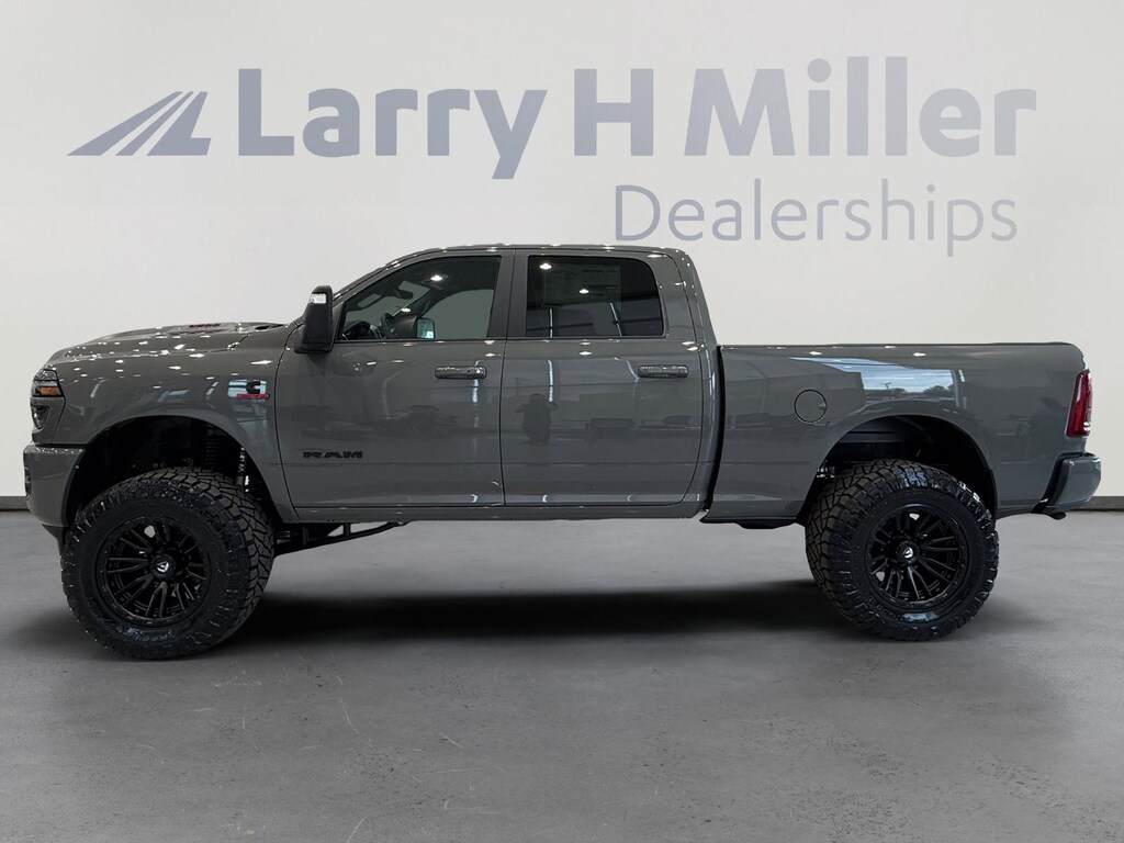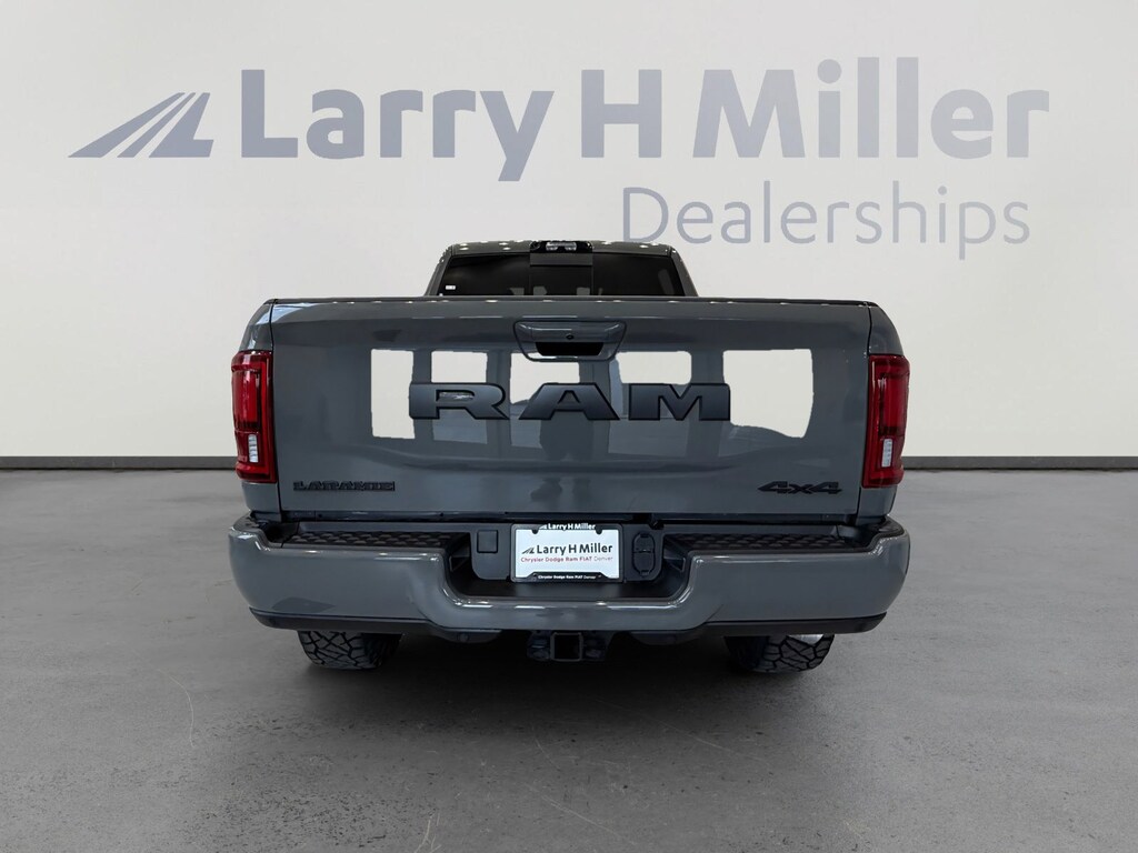 Larry H. MIller Chrysler Dodge Ram Fiat offers this 2026 Ceramic Gray Clearcoat Ram 3500 Laramie 4WD. It is well equipped and includes these standard and optional features and benefits: Laramie Level 1 Plus Equipment Group (#1 Seat Foam Cushion, 115V Auxiliary Rear Power Outlet, 2 Way Rear Headrest Seat, 2nd Row in Floor Storage Bins, 4 Way Front Headrests, Active Lane Management System, Adaptive Steering System, Auto Adjust in Reverse Exterior Mirrors, Auto Dimming Exterior Passenger Mirror, Auto High Beam Headlamp Control, Auto Power-Folding Mirrors, Auto-Dimming Exterior Mirrors, Bucket Seats, Center Stop Lamp with Cargo View Camera, Chrome Exterior Mirrors, Drowsy Driver Detection, Dual Wireless Charging Pad, Exterior Mirrors Courtesy Lamps, Exterior Mirrors with Heating Element, Exterior Mirrors with Memory, Exterior Mirrors with Supplemental Signals, Foam Bottle Insert (door Trim Panel), Folding Flat Load Floor Storage, Forward and Reverse Utility Lights, Front Seat Back Map Pockets, Full Length Upgraded Floor Console, Heated Front Seats, Heated Steering Wheel, High Back Seats, Leather Trimmed Bucket Seats, LED Bed Lighting, Mirror Running Lights, MOPAR Deployable Bed Step, MOPAR Spray in Bedliner, Power 2-Way Driver Lumbar Adjust, Power 2-Way Passenger Lumbar Adjust, Power Adjust 8-Way Driver Seat, Power Adjust 8-Way Front Passenger Seat, Power Adjust Mirrors, Power Adjustable Pedals with Memory, Power Heat Fold Memory Telescopic Mirrors, Power Telescoping Mirrors, Power-Adjustable Convex Aux Mirrors, Radio/Driver Seat/Mirrors/Pedals Memory, Rain Sensitive Windshield Wipers, Rear 60/40 Folding Seat, Remote Tailgate Release, Traffic Sign Recognition, and Ventilated Front Seats), Night Edition (Black Exterior Mirrors, Black Exterior Truck Badging, Black Wheel Center Hub, Body Color Grille Surround, Gloss Black Grille Billets/Accents, Sport Performance Hood, and Wheels: 20 x 8.0 Black Painted Aluminum), Quick Order Package 24H Laramie, 10 Speakers, 4-Wheel Disc Brakes, 4G LTE Wi-Fi Hot Spot, 5th Wheel/Gooseneck Towing Prep Group, ABS brakes, Air Conditioning, Alexa Built-in, Alloy wheels, AM/FM radio: SiriusXM with 360L, Apple CarPlay, Apple CarPlay/Android Auto, Auto-dimming Rear-View mirror, Automatic temperature control, Brake assist, Bumpers: body-color, Compass, Connected Travel and Traffic Services, Connectivity - US/Canada, Dash Pass Thru Wire Circuits, Delay-off headlights, Disassociated Touchscreen Display, Driver door bin, Driver vanity mirror, Dual Alternators Rated At 480 Amps, Dual front impact airbags, Dual front side impact airbags, Electronic Stability Control, Emergency Vehicle Alert System (EVAS), Front anti-roll bar, Front Center Armrest w/Storage, Front dual zone A/C, Front fog lights, Front License Plate Bracket, Front reading lights, Fully automatic headlights, Garage door transmitter, Global Telematics Box Module, Google Android Auto, GPS Antenna Input, GPS Navigation, HD Radio, Heated door mirrors, Heated front seats, Heated steering wheel, Illuminated entry, Instrument Panel Mounted Auxiliary Switches, Integrated Voice Command with Bluetooth, Leather Trim 40/20/40 Bench Seat, Low tire pressure warning, Manufacturer's Statement of Origin, MOPAR Front and Rear Rubber Floor Mats, MyFlexCare Service Diesel, Navigation System, Occupant sensing airbag, Off-Road Information Pages, Outside temperature display, Overhead airbag, Overhead console, Panic alarm, ParkView Rear Back-Up Camera, Passenger door bin, Passenger vanity mirror, Power door mirrors, Power driver seat, Power passenger seat, Power steering, Power windows, Radio data system, Radio: Uconnect 5 Navigation with 12.0 Display, Rear reading lights, Rear seat center armrest, Rear step bumper, Rear window defroster, Remote keyless en Price includes: $1000 - 2026 National Bonus Cash . Exp. 04/30/2026 Price includes $15,000 of dealer adde