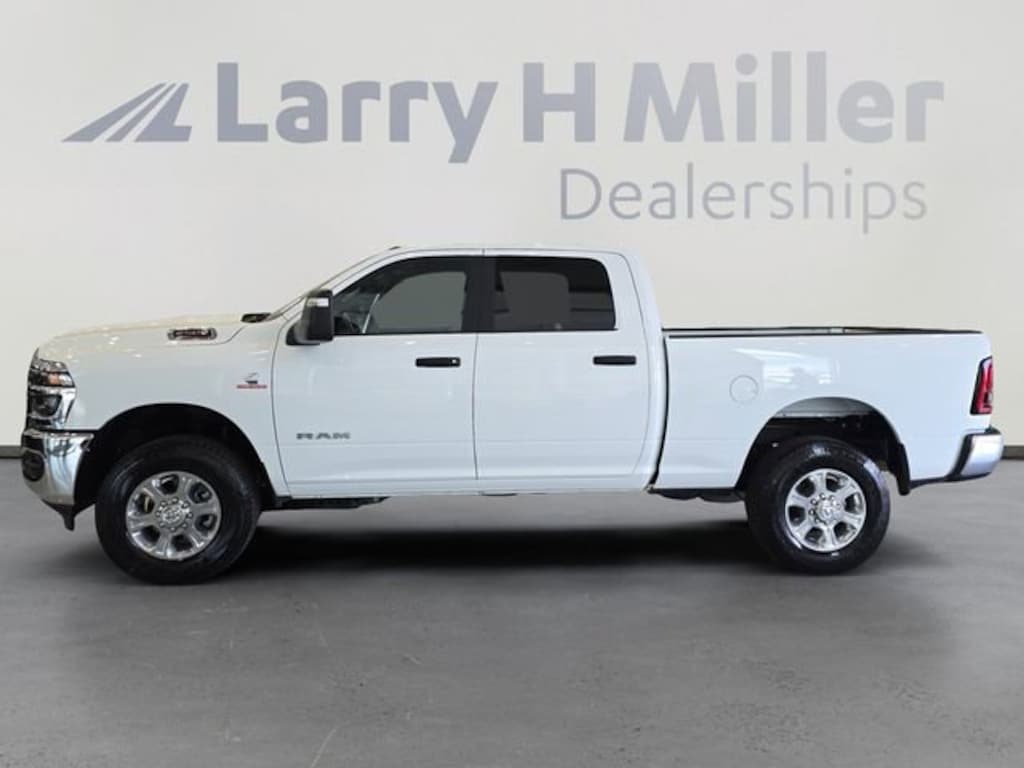 Larry H. MIller Chrysler Dodge Ram Fiat offers this 2025 Bright White Clearcoat Ram 2500 Big Horn 4WD. It is well equipped and includes these standard and optional features and benefits: Big Horn Level 1 Equipment Group (2 Way Rear Headrest Seat, 2nd Row In Floor Storage Bins, 4 Way Front Headrests, 40/20/40 Split Bench Seat, Anti-Spin Differential Rear Axle, Auto Power-Folding Mirrors, Auto-Dimming Rear-View Mirror, Black Exterior Mirrors, Dual Glove Boxes, Exterior Mirrors Courtesy Lamps, Exterior Mirrors w/Heating Element, Exterior Mirrors w/Supplemental Signals, Foam Bottle Insert (Door Trim Panel), Folding Flat Load Floor Storage, Footwell Courtesy Lamp, Forward & Reverse Utility Lights, Front Armrest w/Cupholders, Front Center Seat Cushion Storage, Front Seat Back Map Pockets, Glove Box Lamp, Locking Lower Glove Box, Luxury Steering Wheel, Manual Adjust 4-Way Front Passenger Seat, Mirror Running Lights, Power 2-Way Driver Lumbar Adjust, Power Adjust 8-Way Driver Seat, Power Adjust Mirrors, Power Adjustable Convex Aux Mirrors, Power Heated Folding Telescopic Mirrors, Power Telescoping Mirrors, Premium Cloth 40/20/40 Bench Seat, Rear 60/40 Folding Seat, Rear Dome w/On/Off Switch Lamp, Remote USB Port - Charge Only, Steering Wheel Mounted Audio Controls, and Storage Tray), Quick Order Package 24Z Big Horn, 4-Wheel Disc Brakes, 4G LTE Wi-Fi Hot Spot, 5th Wheel/Gooseneck Towing Prep Group, 6 Speakers, ABS brakes, Air Conditioning, Alloy wheels, AM/FM radio: SiriusXM, Apple CarPlay, Apple CarPlay/Android Auto, Brake assist, Bumpers: chrome, Cloth 40/20/40 Bench Seat, Compass, Connectivity - US/Canada, Delay-off headlights, Driver door bin, Dual front impact airbags, Dual front side impact airbags, Electronic Stability Control, Front anti-roll bar, Front Center Armrest w/Storage, Front fog lights, Front License Plate Bracket, Front reading lights, Fully automatic headlights, Global Telematics Box Module (TBM), Google Android Auto, GPS Antenna Input, Heated door mirrors, Illuminated entry, Integrated Voice Command w/Bluetooth, Low tire pressure warning, Manual Adjust 4-Way Driver Seat, MOPAR Front & Rear Rubber Floor Mats, Occupant sensing airbag, Outside temperature display, Overhead airbag, Overhead console, Panic alarm, ParkView Rear Back-Up Camera, Passenger door bin, Passenger vanity mirror, Power door mirrors, Power steering, Power windows, Radio data system, Radio: Uconnect 5 w/8.4 Display, Rear anti-roll bar, Rear Folding Seat, Rear seat center armrest, Rear step bumper, Rear window defroster, Remote keyless entry, Security system, Selectable Tire Fill Alert, SiriusXM Radio Service, Speed control, Tachometer, Tilt steering wheel, Traction control, Trip computer, Turn signal indicator mirrors, Variably intermittent wipers, Vinyl 2nd Row Seat, Voltmeter, and Wheels: 18 x 8.0 Polished Aluminum.