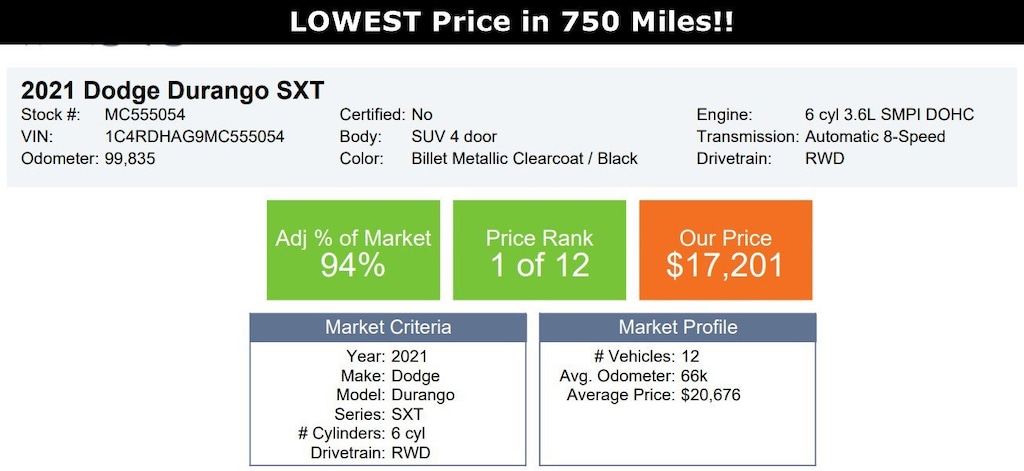 Larry H. MIller Chrysler Dodge Ram Fiat offers this 2021 Billet Metallic Clearcoat Dodge Durango SXT RWD. It is well equipped and includes these standard and optional features and benefits: 3rd Row Seating Group (2nd Row 60/40 Fold & Tumble Seat, 3rd Row Remote Headrest Dumping, 3rd Row Seat, and 7-Passenger Seating), Quick Order Package 2BA SXT, 3.27 Rear Axle Ratio, 4-Wheel Disc Brakes, 6 Speakers, ABS brakes, Air Conditioning, Alloy wheels, AM/FM radio: SiriusXM, Anti-whiplash front head restraints, Apple CarPlay, Apple CarPlay/Android Auto, Auto-dimming Rear-View mirror, Auto-leveling suspension, Automatic temperature control, Brake assist, Bumpers: body-color, Cloth Bucket Seats w/Shift Insert, Compass, Delay-off headlights, Driver door bin, Driver vanity mirror, Dual front impact airbags, Dual front side impact airbags, Electronic Stability Control, Four wheel independent suspension, Front anti-roll bar, Front Bucket Seats, Front Center Armrest w/Storage, Front dual zone A/C, Front fog lights, Front reading lights, Fully automatic headlights, Google Android Auto, GPS Antenna Input, Heated door mirrors, Illuminated entry, Integrated Center Stack Radio, Integrated Voice Command w/Bluetooth, Knee airbag, Leather steering wheel, Low tire pressure warning, Occupant sensing airbag, Outside temperature display, Overhead airbag, Overhead console, Panic alarm, ParkView Rear Back-Up Camera, Passenger door bin, Passenger vanity mirror, Power door mirrors, Power steering, Power windows, Radio data system, Radio: Uconnect 4 w/8.4 Display, Rear air conditioning, Rear anti-roll bar, Rear Load Leveling Suspension, Rear reading lights, Rear seat center armrest, Rear window defroster, Rear window wiper, Remote keyless entry, SiriusXM Satellite Radio, Speed control, Speed-sensing steering, Speed-Sensitive Wipers, Split folding rear seat, Spoiler, Steering wheel mounted audio controls, Tachometer, Telescoping steering wheel, Tilt steering wheel, Traction control, Trip computer, Tungsten Interior Accent Stitch, USB Host Flip, Variably intermittent wipers, Voltmeter, and Wheels: 18 x 8.0 Painted Aluminum.