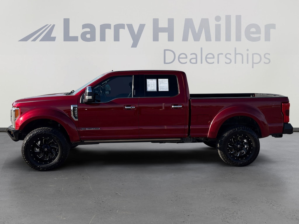 Ruby Red Metallic Tinted Clearcoat 2019 Ford F-250SD Platinum 4WD TorqShift 6-Speed Automatic Power Stroke 6.7L V8 DI 32V OHV Turbodiesel F-250SD Platinum, 4D Crew Cab, Power Stroke 6.7L V8 DI 32V OHV Turbodiesel, TorqShift 6-Speed Automatic, 4WD, Ruby Red Metallic Tinted Clearcoat, Black Leather, 10 Speakers, 110V/400W Outlet, 4-Wheel Disc Brakes, ABS brakes, Adaptive Cruise Control & Collision Warning, Adjustable pedals, Air Conditioning, Alloy wheels, AM/FM radio: SiriusXM, AppLink/Apple CarPlay and Android Auto, Auto-dimming Rear-View mirror, Automatic temperature control, Brake assist, Compass, Delay-off headlights, Driver door bin, Driver vanity mirror, Dual front impact airbags, Dual front side impact airbags, Electronic Stability Control, Emergency communication system: SYNC 3 911 Assist, Engine Block Heater, Exterior Parking Camera Rear, Flow-Through Console, Front anti-roll bar, Front Bucket Seats, Front Center Armrest, Front dual zone A/C, Front fog lights, Front reading lights, Fully automatic headlights, FX4 Off-Road Package, GVWR: 10,000 lb Payload Package, Heated door mirrors, Hill Descent Control, Illuminated entry, Leather steering wheel, Low tire pressure warning, Off-Road Specifically Tuned Shock Absorbers, Outside temperature display, Overhead airbag, Overhead console, Panic alarm, Passenger door bin, Passenger vanity mirror, Power door mirrors, Power driver seat, Power passenger seat, Power steering, Power windows, Radio data system, Radio: B&O Sound System by Bang & Olufsen, Rear Parking Sensors, Rear reading lights, Rear seat center armrest, Rear step bumper, Rear window defroster, Remote keyless entry, Security system, SiriusXM Radio, Speed control, Split folding rear seat, Steering wheel mounted audio controls, SYNC 3 Communications & Entertainment System, Tachometer, Telescoping steering wheel, Tilt steering