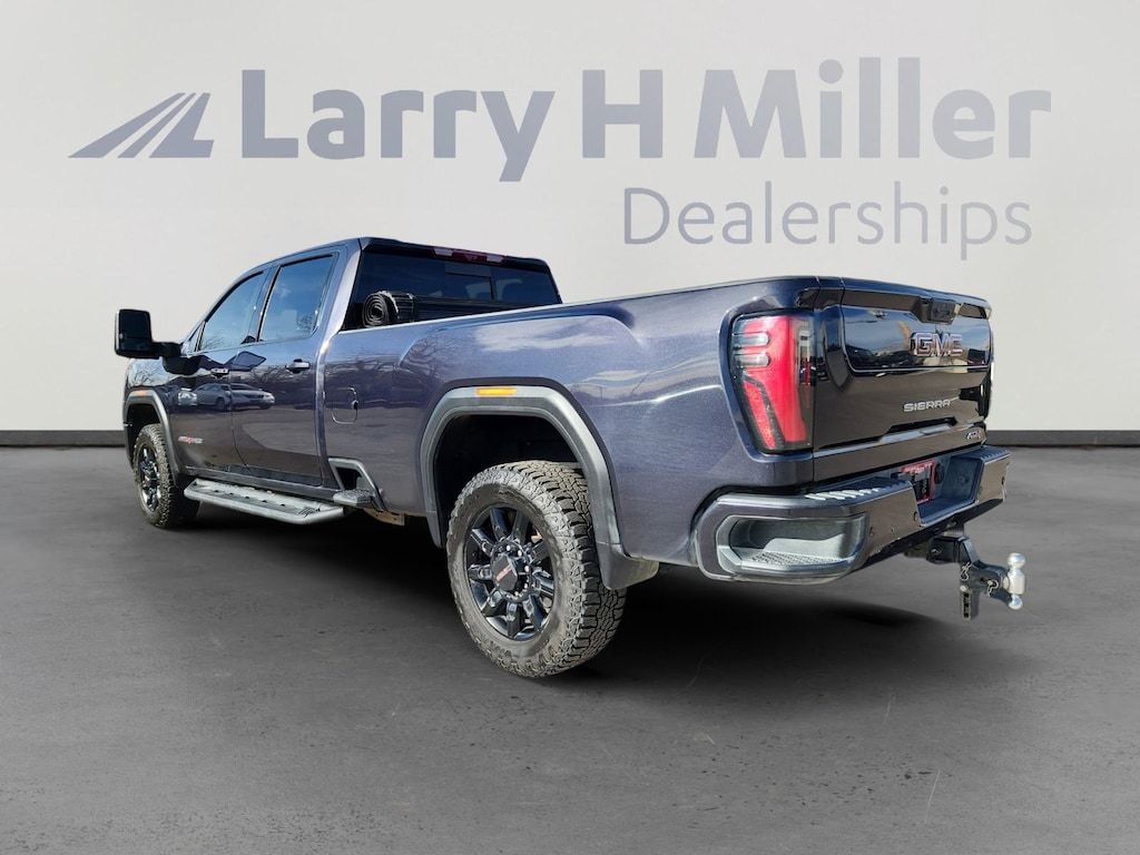 Larry H. MIller Chrysler Dodge Ram Fiat offers this 2024 Titanium Rush Metallic GMC Sierra 2500HD AAT4 4WD. It is well equipped and includes these standard and optional features and benefits: AT4 Preferred Package (Adaptive Cruise Control, LED Smoked Amber Roof Marker Lamps, Power Sliding Rear Window w/Defogger, and Universal Home Remote), Gooseneck/5th Wheel Prep Package, Hitch Package (LPO), Preferred Equipment Group 4SB (120-Volt Bed Mounted Power Outlet, 120-Volt Instrument Panel Power Outlet, 2 Charge-Only Rear USB Ports, 2 Charge/Data USB Ports Inside Center Console, 2 USB Ports, 2-Speed Active Transfer Case, Bed View Camera w/2 Trailer Camera Provisions, Bose Premium 7-Speaker Sound System, Deep-Tinted Glass, Electric Rear-Window Defogger, Floor-Mounted Center Console, Front Prem Floor Liners w/Removable Carpet Insert, Front Rain-Sensing Wipers, Gloss Black Header Grille & Grille Insert Bars, GMC Connected Access Capable, HD Surround Vision, Heated 2nd Row Outboard Seats, Heated Driver & Front Outboard Passenger Seats, Integrated Trailer Brake Controller, Keyless Open & Start, LED Cargo Area Lighting, Manual Tilt-Wheel/Telescoping Steering Column, OnStar & GMC Connected Services Capable, Power Front Passenger Windows w/Express Up/Down, Push Button Start, Rear Cross Traffic Alert, Rear Prem Floor Liners w/Removable Carpet Insert, Rear Wheelhouse Liners, Remote Vehicle Starter System, Safety Alert Seat, SiriusXM w/360L, Spray-On Bedliner w/AT4 Logo, Steering Wheel Audio Controls, Trailer Cam Provisions & Trailer Viewing Software, Trailer Side Blind Zone Alert, Ultrasonic Front & Rear Park Assist, Unauthorized Entry Theft-Deterrent System, Ventilated Driver & Front Passenger Seats, Wireless Charging, and Wireless Phone Projection), Technology Package (Inside Rearview Auto-Dimming Rear Camera Mirror and Multicolor 15 Diagonal Head-Up Display), X31 Off-Road Package (Hill Descent Control), 10-Speed Automatic, 4WD, Jet Black With Kalahari Accents Leather, 10-Way Power Driver Seat Adjuster w/Lumbar, 10-Way Power Passenger Seat Adjuster w/Lumbar, 1st & 2nd Rows All-Weather Floor Liners (LPO), 220-Amp Alternator, 4-Wheel Disc Brakes, 7 Speakers, ABS brakes, Air Conditioning, Alloy wheels, AM/FM radio: SiriusXM with 360L, Apple CarPlay/Android Auto, Auto High-beam Headlights, Auto-dimming door mirrors, Auto-dimming Rear-View mirror, Automatic Emergency Braking, Automatic temperature control, Black Sport Step (LPO), Brake assist, Buckle to Drive, Bumpers: body-color, Compass, Delay-off headlights, Driver door bin, Driver Memory, Driver vanity mirror, Dual front impact airbags, Dual front side impact airbags, Electronic Stability Control, Engine Block Heater, Exhaust Brake, Following Distance Indicator, Forward Collision Alert, Front anti-roll bar, Front Bucket Seats, Front Center Armrest, Front dual zone A/C, Front fog lights, Front License Plate Kit, Front Pedestrian Braking, Front reading lights, Front wheel independent suspension, Fully automatic headlights, Heated door mirrors, Heated front seats, Heated rear seats, Heated steering wheel, Heavy-Duty 80 Amp Battery, Hitch Guidance w/Hitch View, Illuminated entry, In-Vehicle Trailering System App, IntelliBeam Automatic High Beam On/Off, Lane Departure Warning System, Low tire pressure warning, Memory seat, Occupant sensing airbag, Off-Road Suspension, Outside temperature display, Overhead airbag, Overhead console, Panic alarm, Passenger door bin, Passenger vanity mirror, Perforated Leather-Appointed Front Seat Trim, Pickup Box, Power door mirrors, Power driver seat, Power passenger seat, Power steering, Power windows, Premium audio system: Premium GMC Infotainment System, Radio: AM/FM w/Premium GMC Infotainment System, Rain sensing wipers,