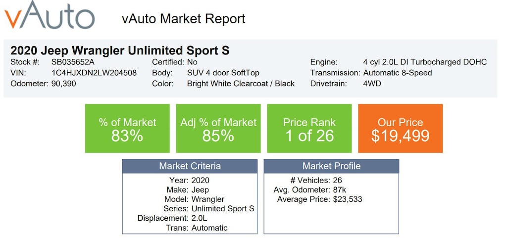 Quick Order Package 22S Sport S (Automatic Headlamps, Deep Tint Sunscreen Windows, Front 1-Touch Down Power Windows, Leather Wrapped Steering Wheel, Power Heated Mirrors, Remote Keyless Entry, Security Alarm, Speed Sensitive Power Locks, Sun Visors w/Illuminated Vanity Mirrors, and Wheels: 17 x 7.5 Tech Silver Aluminum), 3.45 Rear Axle Ratio, 4-Wheel Disc Brakes, 8 Speakers, ABS brakes, Air Conditioning, AM/FM radio, Aux Battery, Black 3-Piece Hard Top, Brake assist, Cloth Low-Back Bucket Seats, Compass, Delay-off headlights, Driver door bin, Driver vanity mirror, Dual front impact airbags, Dual front side impact airbags, Electronic Stability Control, Freedom Panel Storage Bag, Front anti-roll bar, Front Bucket Seats, Front Center Armrest w/Storage, Front fog lights, Front reading lights, Integrated roll-over protection, Integrated Voice Command w/Bluetooth, Low tire pressure warning, Manufacturer's Statement of Origin, No Soft Top, Non-Lock Fuel Cap w/o Discriminator, Normal Duty Suspension, Occupant sensing airbag, Outside temperature display, ParkView Rear Back-Up Camera, Passenger door bin, Passenger vanity mirror, Power steering, Radio data system, Radio: Uconnect 3 w/5 Display, Rear anti-roll bar, Rear reading lights, Rear Window Defroster, Rear Window Wiper/Washer, Side Steps (DISC), Speed control, Split folding rear seat, Steering wheel mounted audio controls, Stop-Start Dual Battery System, Tachometer, Telescoping steering wheel, Tilt steering wheel, Traction control, Trip computer, Variably intermittent wipers, and Wheels: 17 x 7.5 Black Steel Styled.
