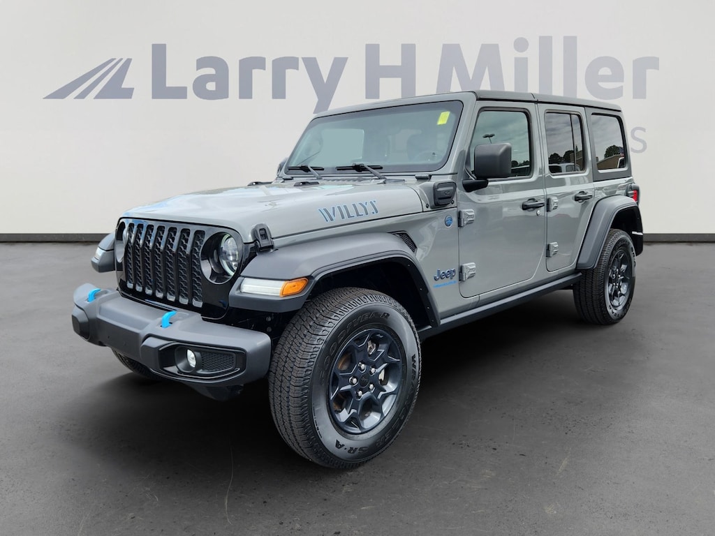 CARFAX One-Owner. Certified. Sting-Gray Clearcoat 2023 Jeep Wrangler Willys 4xe 4WD 4WD 8-Speed Automatic 2.0L I4 DOHC 2.0L I4 DOHC, 4xe 4-Wheel Drive Swing Gate Decal, 7 & 4 Pin Wiring Harness, 700 Amp Maintenance Free Battery, 97 MPH Vehicle Max Speed Calibration, ABS brakes, Alloy wheels, Anti-Spin Differential Rear Axle, Apple CarPlay/Android Auto, Auxiliary Switches, Black 3-Piece Hard Top, Black Grille, Class II Receiver Hitch, Compass, Electronic Stability Control, Freedom Panel Storage Bag, Front dual zone A/C, Front LED Fog Lamps, Heated door mirrors, Illuminated entry, LED Headlamp & Fog Lamp Group, LED Premium Reflector Headlamps, Low tire pressure warning, Molded-In-Color Fender Flares (2-Piece), MOPAR All-Weather Floor Mats, Normal Duty Suspension, ParkView Rear Back-Up Camera, Passenger door bin, Quick Order Package 29W Willys, Rear Window Defroster, Rear Window Wiper/Washer, Remote keyless entry, Traction control, Trailer Tow & Aux Switch Group, Wheels: 17 x 7.5 Black Aluminum, Willys, Willys 4xe Hood Decal.