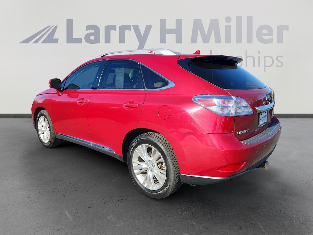 Larry H. MIller Chrysler Dodge Ram Fiat offers this 2010 Matador Red Mica Lexus RX 450h AWD. It is well equipped and includes these standard and optional features and benefits: 3.5L V6 DOHC VVT-i 24V, AWD, Light Gray w/Semi-Aniline Leather Seat Trim or Smooth Perforated Leather Seat Trim or Smooth Leather Seat Trim, 18 x 7.5 5-Spoke Aluminum Wheels, 3.542 Axle Ratio, 4-Wheel Disc Brakes, 9 Speakers, ABS brakes, Air Conditioning, Alloy wheels, AM/FM radio: XM, Anti-whiplash front head restraints, Auto-dimming door mirrors, Auto-dimming Rear-View mirror, Automatic temperature control, Brake assist, Bumpers: body-color, CD player, Cloth Seat Trim, Compass, Delay-off headlights, Driver door bin, Driver vanity mirror, Dual front impact airbags, Dual front side impact airbags, Electronic Stability Control, Emergency communication system: Safety Connect, Four wheel independent suspension, Front anti-roll bar, Front Bucket Seats, Front Center Armrest, Front dual zone A/C, Front fog lights, Front reading lights, Fully automatic headlights, Garage door transmitter: HomeLink, Genuine wood console insert, Genuine wood door panel insert, Heated door mirrors, Illuminated entry, Knee airbag, Leather steering wheel, Low tire pressure warning, Occupant sensing airbag, Outside temperature display, Overhead airbag, Overhead console, Panic alarm, Passenger door bin, Passenger vanity mirror, Power door mirrors, Power driver seat, Power passenger seat, Power steering, Power windows, Radio data system, Rear anti-roll bar, Rear reading lights, Rear seat center armrest, Rear side impact airbag, Rear window defroster, Rear window wiper, Remote keyless entry, Security system, Speed control, Speed-sensing steering, Split folding rear seat, Spoiler, Steering wheel mounted audio controls, Telescoping steering wheel, Tilt steering wheel, Traction control, Trip computer, Turn signal indicator mirrors, and Variably intermittent wipers.