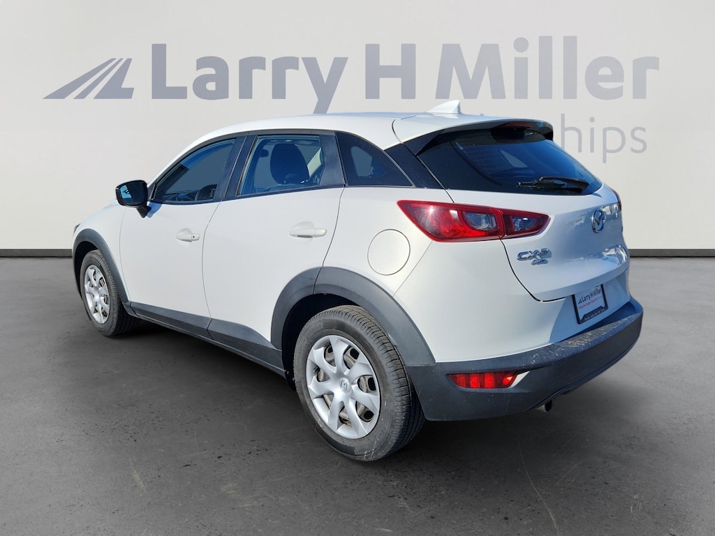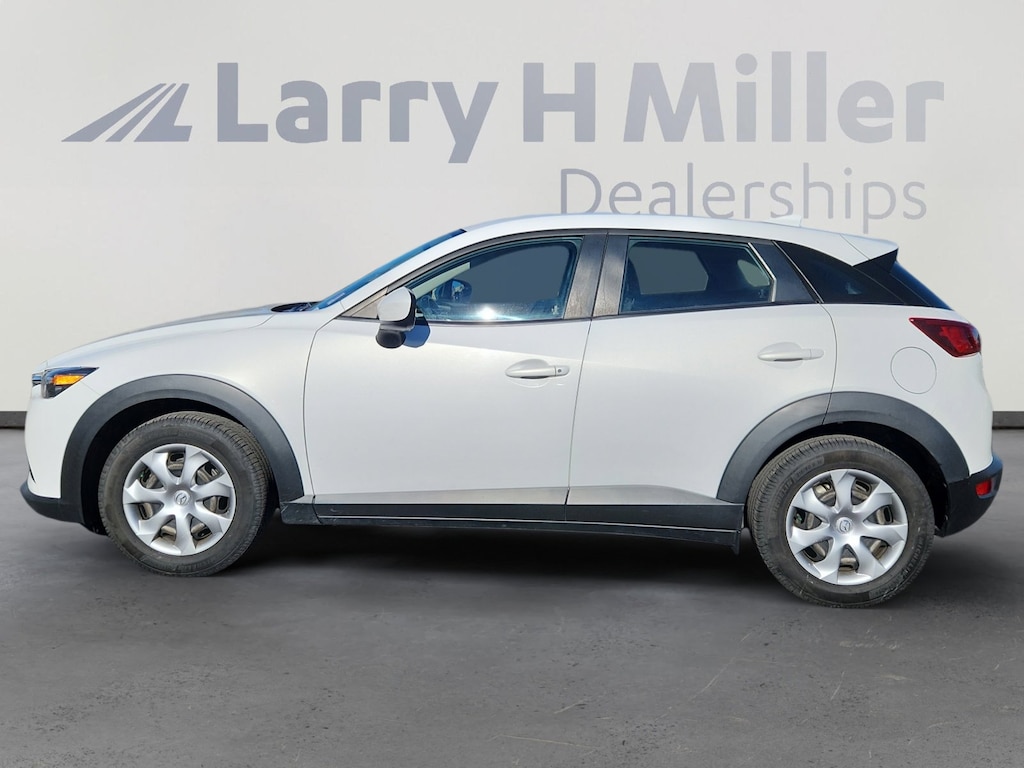 Larry H. MIller Chrysler Dodge Ram Fiat offers this 2016 Crystal White Pearl Mica Mazda CX-3 Sport AWD. It is well equipped and includes these standard and optional features and benefits: 4-Wheel Disc Brakes, 4.325 Axle Ratio, 6 Speakers, ABS brakes, Aha Internet Radio, Air Conditioning, Alloy wheels, AM/FM radio, Brake assist, Bumpers: body-color, CD player, Cloth Upholstery, Delay-off headlights, Driver door bin, Driver vanity mirror, Dual front impact airbags, Dual front side impact airbags, E911 Automatic Emergency Notification, Electronic Stability Control, Emergency communication system: Mazda Connect, Exterior Parking Camera Rear, Front anti-roll bar, Front Bucket Seats, Front reading lights, Front wheel independent suspension, Illuminated entry, Infotainment System Voice Command, Low tire pressure warning, Occupant sensing airbag, Outside temperature display, Overhead airbag, Pandora Internet Radio, Panic alarm, Passenger door bin, Passenger vanity mirror, Power door mirrors, Power steering, Power windows, Radio Broadcast Data System Program Information, Radio data system, Radio: AM/FM/CD/HD Modular Audio System w/6 Spkrs, Rear window defroster, Rear window wiper, Remote keyless entry, SMS Text Msg Audio Delivery & Reply, Speed control, Speed-sensing steering, Split folding rear seat, Spoiler, Steering wheel mounted audio controls, Stitcher Internet Radio, Tachometer, Telescoping steering wheel, Tilt steering wheel, Traction control, Trip computer, Variably intermittent wipers, and Wheels: 16 x 6 Aluminum Alloy.