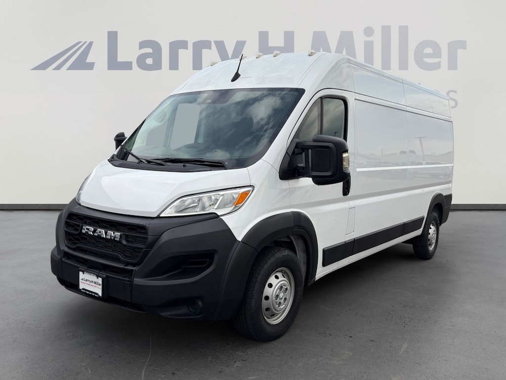 Larry H. MIller Chrysler Dodge Ram Fiat offers this 2023 Bright White Clearcoat Ram ProMaster 2500 High Roof FWD. It is well equipped and includes these standard and optional features and benefits: Quick Order Package 22A, 4 Speakers, 4-Wheel Disc Brakes, 4.08 Axle Ratio, 96 Wide Exterior Mirrors, ABS brakes, Air Conditioning, AM/FM radio: SiriusXM, Apple CarPlay/Android Auto, Black/Gray Seats, Bodyside moldings, Brake assist, Center Wheel Cap, Cloth Bucket Seats, Driver door bin, Driver Seat Armrest, Driver's Seat Mounted Armrest, Electronic Stability Control, Front anti-roll bar, Front Bucket Seats, Front License Plate Bracket, Front reading lights, Front wheel independent suspension, Heavy Duty Suspension, Illuminated entry, Low tire pressure warning, Manual Folding Exterior Mirrors, Manufacturer's Statement of Origin, Outside temperature display, Overhead airbag, Overhead console, ParkView Rear Back-Up Camera, Passenger Bucket Seat, Passenger door bin, Power steering, Power windows, Radio: Uconnect 5 w/7 Display, Remote keyless entry, Speed Control, Steering wheel mounted audio controls, Tachometer, Telescoping steering wheel, Traction control, Trip computer, Turn signal indicator mirrors, Variably intermittent wipers, Wheels: 16 x 6.0 Steel, and Wide Power Heated Mirrors.